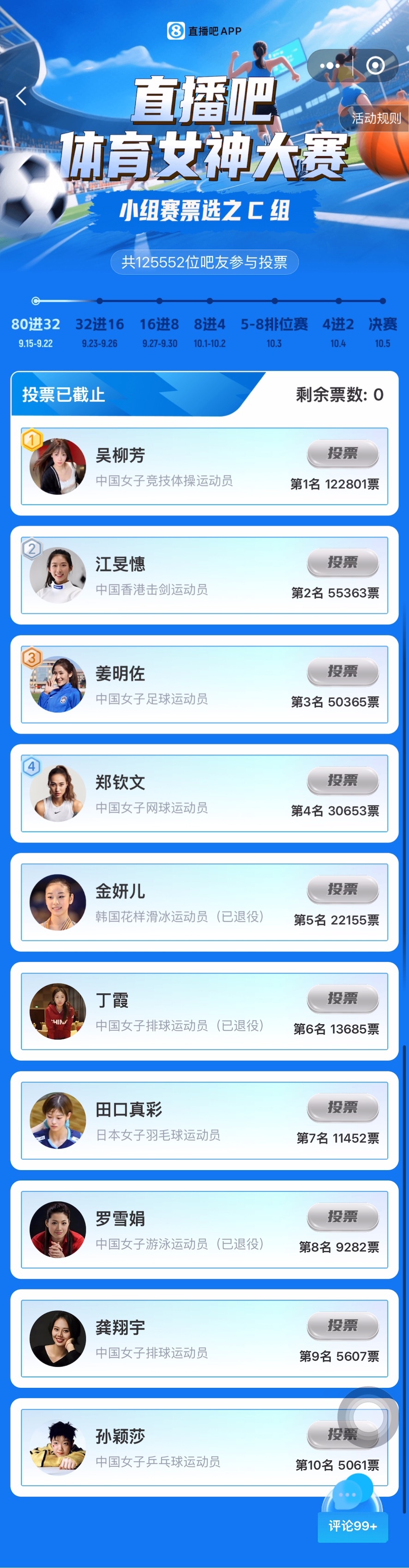 截至今日10:00,小組賽C組的投票已全部結束(點擊查看C組賽果),晉級32強的選手分別是: