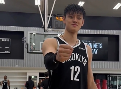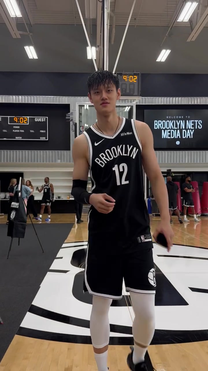 帥氣小伙!曾凡博在媒體日上已經(jīng)上身了籃網(wǎng)12號新球衣