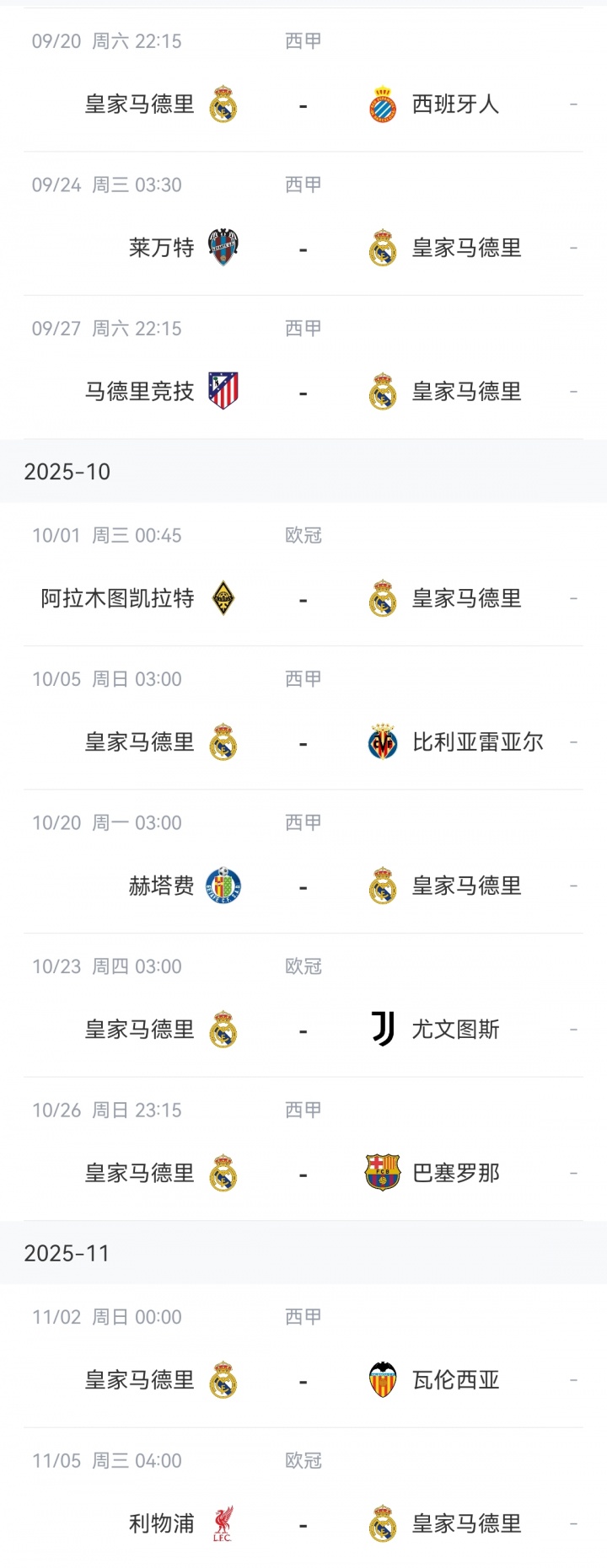 皇馬賽程