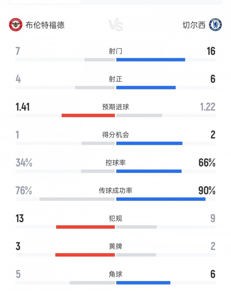 9月14日訊 英超第4輪比賽,切爾西客場(chǎng)2-2戰(zhàn)平布倫特福德。