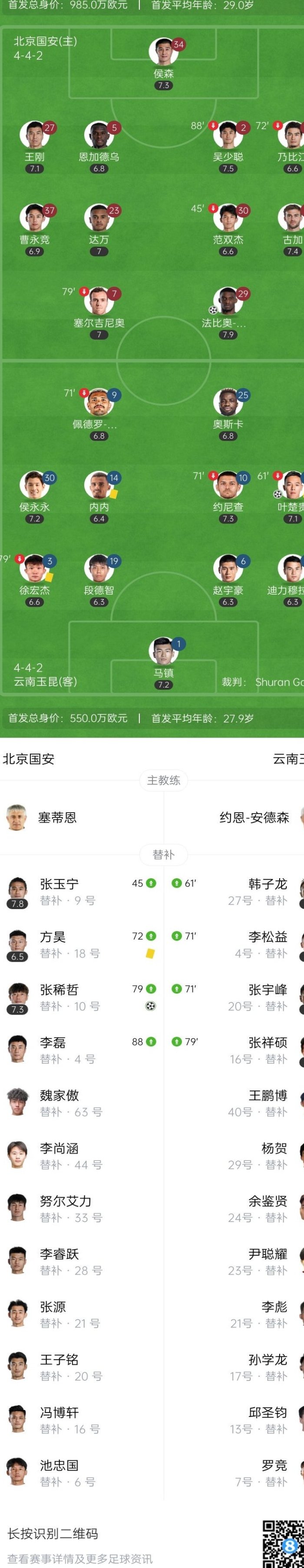 第7分鐘,國(guó)安右路任意球開進(jìn)禁區(qū)投訴有手球,主裁判表示沒有問題↓