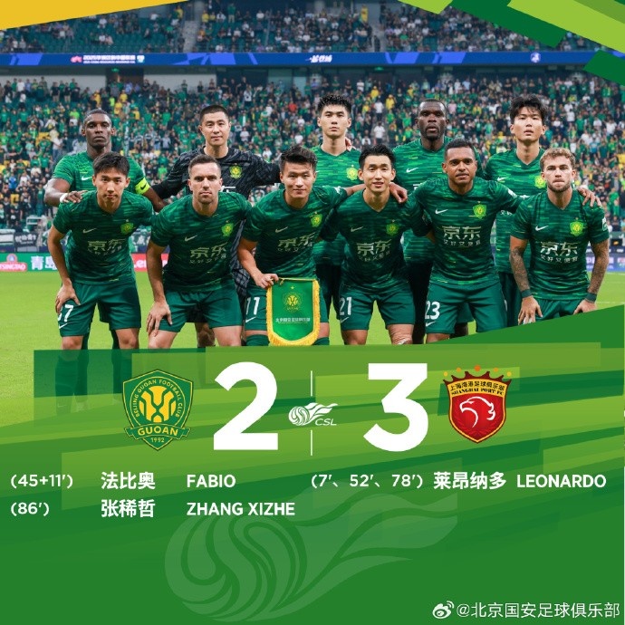 9月21日,在2025華潤飲料中超聯(lián)賽第25輪比賽中,北京國安主場2-3負于上海海港。