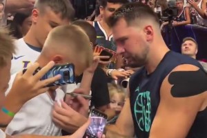 優(yōu)質(zhì)偶像東契奇十分耐心,與場(chǎng)邊小球迷合影+簽名一個(gè)不落!